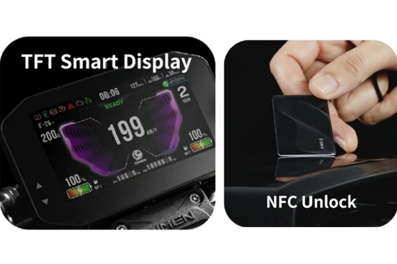 A large-capacity 72V38Ah dual lithium battery and a 108V60Ah semi-solid-state lithium battery are portable, rechargeable, and swappable, offering a maximum range of 250km, making commuting and long-distance travel effortless and eliminating range anxiety!